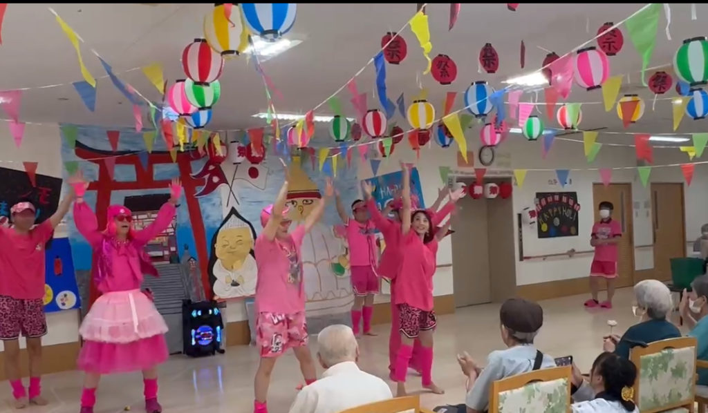 今どきダンスをお披露目したのですが、車いすの方、杖の方、介助が必要な方皆さんが手拍子をしてくれお互いニコニコ。