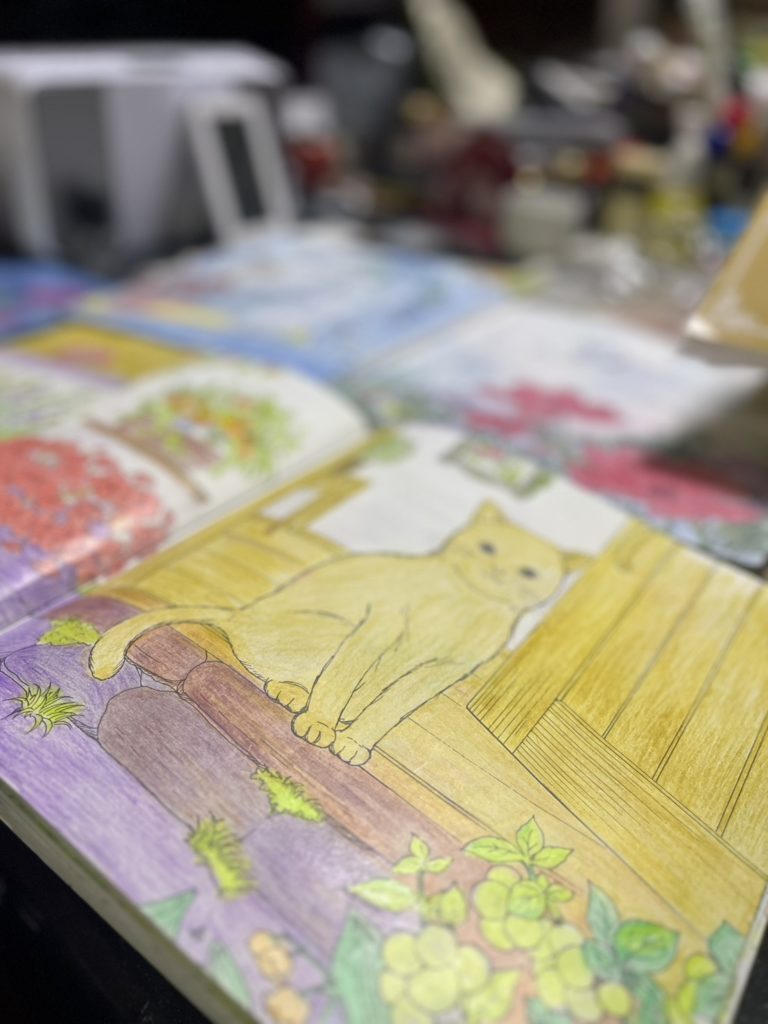 塗り絵がとても大好きな方なのですが使う色がとにかく優しく、見ているだけで心が和むような色彩。