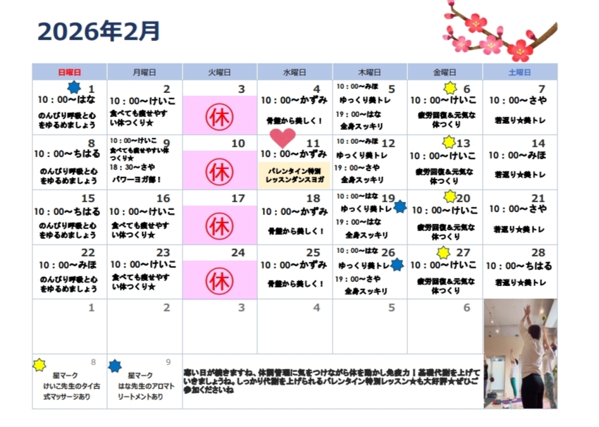 1月⛄️レッスンスケジュール